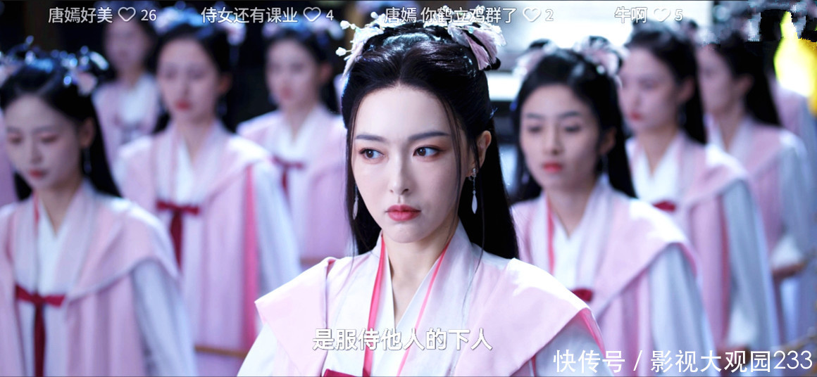 粉色娇嫩,导演怕唐嫣hold不住,煞费苦心找了一群陪衬颜值的群演。
